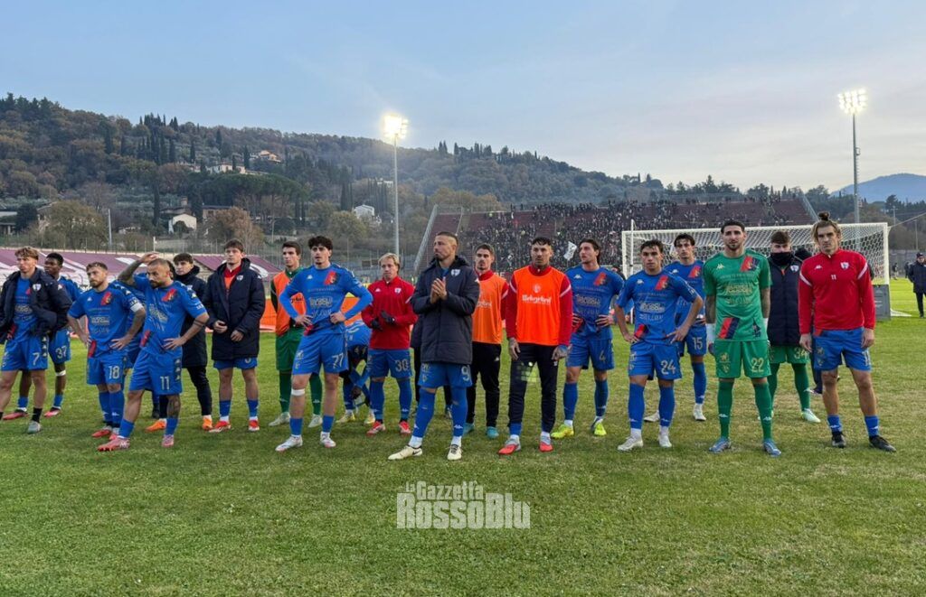 La ripesa si apre con una buona occasione per Shaka Mawuli, ma il centrocampista aretino non riesce a superare Cultraro. La Samb non è quella compatta e solida della prima frazione e, al 12’, passa in svantaggio: Tosi, già ammonito qualche minuto prima, stende Pattarello in area di rigore e viene espulso per doppio giallo: calcio di rigore per l’Arezzo. Sul dischetto si presenta Pattarello che, con freddezza e precisione, spiazza l’estremo rossoblù: ottavo centro in campionato e terzo dal dischetto. Il Comunale esplode di gioia, mentre la Samb prova a ricomporsi con l’ingresso in campo di Alfieri al posto di Eusepi e il passaggio ad un 4-2-3 con Candellori largo a sinistra e Sbaffo riferimento offensivo. L’Arezzo, forte dell’uomo in più, gioca con il cronometro e rinuncia ad affondare con convinzione. La Samb barcolla ma, nonostante l’inferiorità numerica, sfiora il gol del pareggio con un ottimo Dalmazzi (migliore in campo tra le fila rossoblù): la sua discesa coraggiosa e disperata si conclude con un tiro dall’interno dell’area che Venturi blocca a terra. La Samb prova a lottare, ma il fischio finale cancella ogni speranza: l’Arezzo si riprende la testa della classifica, mentre la Samb resta ferma al palo. Ora c’è il futuro da affrontare: il nuovo allenatore (per l’arrivo di Filippo D’Alesio sembra essere questione di ore), il turno di riposo e l’ennesima trasferta toscana sul campo del Pontedera.