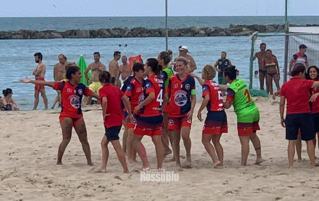 La Samb femminile difenderà lo Scudetto. La formazione rossoblù, continuando in un percorso netto nella tappa che si snoda alla Beach Arena Riviera delle Palme, ha superato in semifinale anche Terracina, con un netto 4-1. Decisivi i gol di Xhaxho (doppietta), Poli e Marucci, che hanno permesso alle ragazze della Happy Car di raggiungere un traguardo prestigioso. Ora l’obiettivo è bissare lo Scudetto conquistato, alla prima partecipazione, nel 2019. Il tricolore è ad un passo per la Samb femminile.