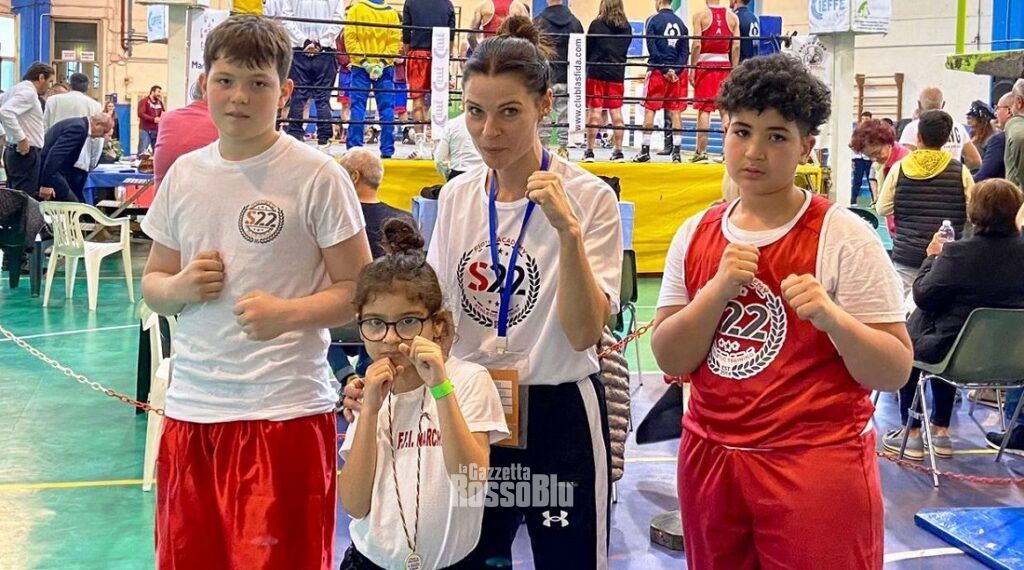 La pugilistica sambenedettese S22, in rappresentanza del settore giovanile del comitato Marche di Luciano Romanella, ha partecipato a Spoleto alla riunione organizzata dalla locale Asd Boxing Club Diego Bartolini dei tecnici Valentino Giacomelli, Valentino Spera e Giuliano Lacovara. I giovani ragazzini marchigiani che hanno rappresentato la nostra regione in Umbria sono: Dalma Salvi, cangurina di 7 anni e mezzo, che si è esibita in una dimostrazione con altri due suoi pari, il cucciolo di 6 anni Giulio Bartoloni della Boxing Club Diego Bartolini di Spoleto con il maestro Valentino Spera e il cangurino di 8 anni Michele Petrillo dell’Asd Sport Boxe Cannara con il maestro Vanni Sereni.