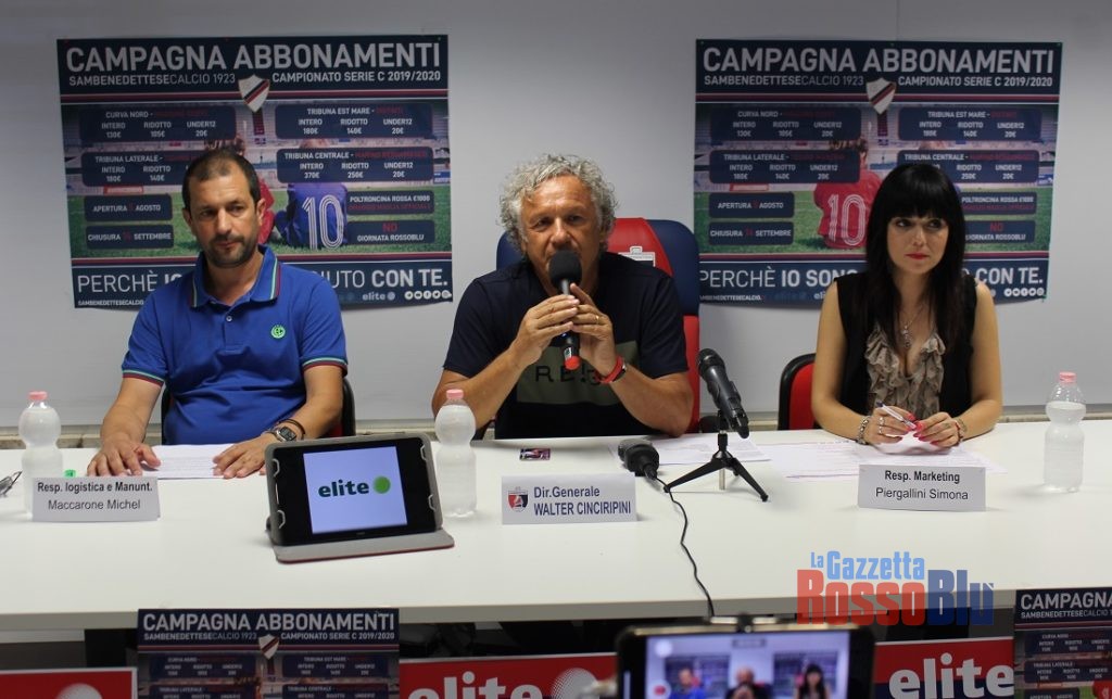 Nel corso della conferenza stampa in cui è stata presentata la campagna abbonamenti per la stagione 2019/20 della Samb il direttore generale Walter Cinciripini ha illustrato anche quella che è la sua visione del club e del ruolo che sta ricoprendo ormai da qualche settimana, nonché del suo rapporto con Franco Fedeli. «Al presidente non ho chiesto nulla; io non ho un contratto con la Sambenedettese e, per assurdo, possiamo interrompere il rapporto quando vogliamo – ha detto il d.g. –. Io, però, ho dei progetti importanti che conto di realizzare per il bene della Samb. Stiamo facendo le cose secondo le regole e contiamo di fare bene. Il presidente deve essere messo a conoscenza di tutto ciò che accade; Fusco si occupa della parte tecnica e io di quella organizzativa».