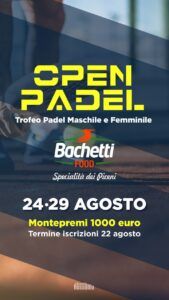 Nella splendida cornice della Riviera delle Palme torna l’Open Padel – Trofeo Bachetti Food. Il trofeo Bachetti Food, competizione di padel maschile e femminile, quest’anno è riconosciuto dalla Federazione Italiana Tennis e ciò ha permesso all’intera manifestazione di raccogliere interesse e adesioni anche da fuori Regione.