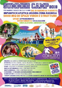 Dopo il successo della scorsa estate, tornano anche quest’anno i SUMMER CAMP 2019, i Centri Estivi destinati a bambini e ragazzi dai 3 ai 14 anni organizzati dalla Collection Atletica Sambenedettese che si terranno presso il Campo Scuola di Atletica Leggera a San Benedetto del Tronto, dal 10 giugno al 9 agosto.