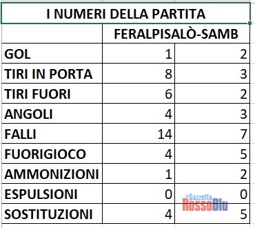 Feralpisalò-Samb 1-2, i numeri della partita