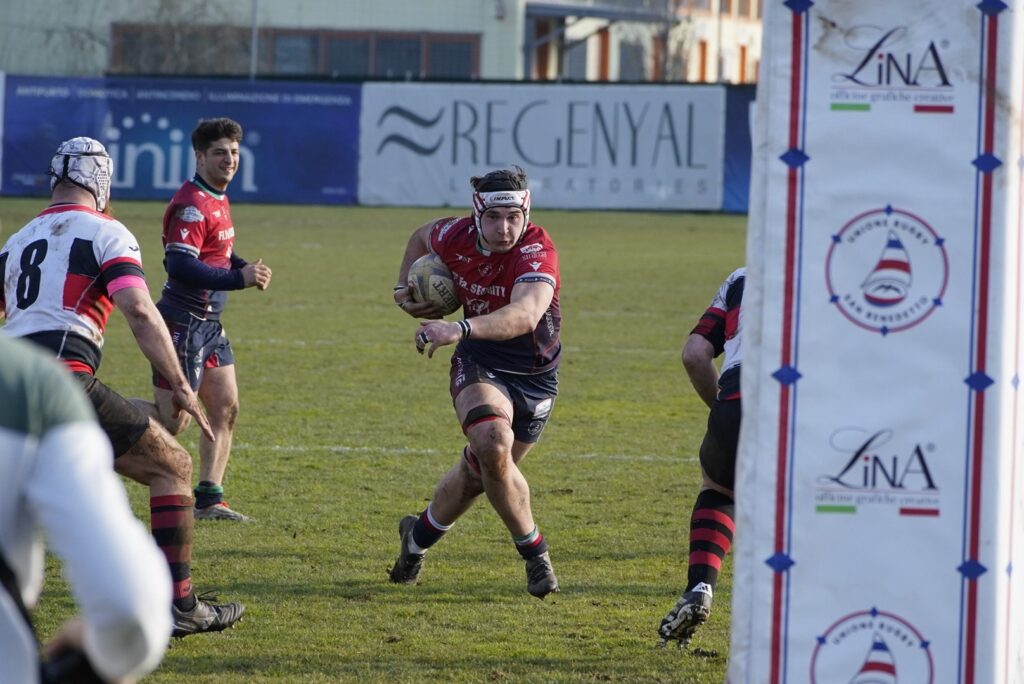 La partita, però, non è stata semplice. L’avvio ha visto un Paganica aggressivo e ben disposto: gli ospiti hanno messo sotto pressione la difesa sambenedettese, raccogliendo 3 punti su calcio piazzato ma sbattendo contro il muro rossoblù che ha negato loro la gioia della meta. L’Unione, nel primo tempo, ha faticato a trovare profondità e si è andati al riposo su un sostanziale equilibrio. Ma nella ripresa la musica cambia, i ragazzi di Coach Lobrauco rientrano in campo con un altro piglio. La svolta arriva al 49′: una lunga mischia avanzante permette a Baronio di schiacciare in meta. L’Unione prende fiducia e al 60′ trova il raddoppio con la marcatura di Vaccari.