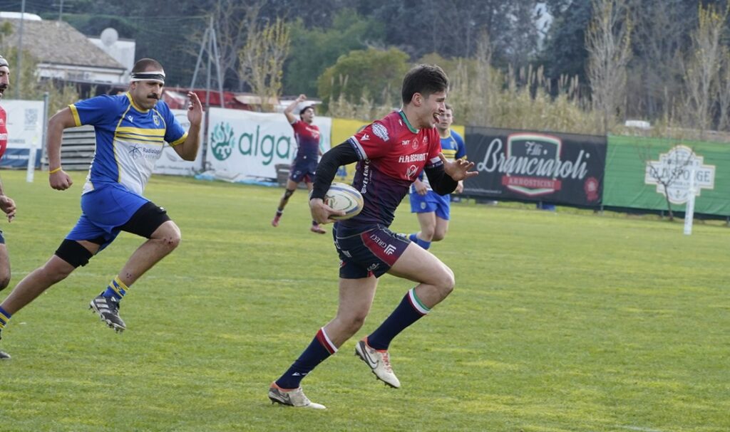 L’avvio del match è stato un vero e proprio uragano. L’Unione ha messo in chiaro le cose già al 1′ con la prima meta di Capone (5-0), seguita al 3′ da quella di D’Agostino, trasformata da Pelozzi (12-0). Al 7′ ancora Capone schiacciava in meta (17-0) e al 9′ D’Agostino concedeva il bis, con Pelozzi implacabile nelle trasformazioni (24-0). Un inizio fulmineo che ha evidenziato una differenza di valori netta, permettendo ai ragazzi di coach Lobrauco di imporre un ritmo insostenibile per la difesa capitolina. La pressione non è calata nella parte centrale del primo tempo: al 22′ è andato in meta Valentini (31-0), seguito al 28′ da Laabbar (38-0) e nuovamente al 33′ da Valentini (45-0), tutti trasformati da un Pelozzi in stato di grazia. La prima frazione si è chiusa sul 52-0 grazie alla terza marcatura personale di Capone al 37′, anche questa trasformata.