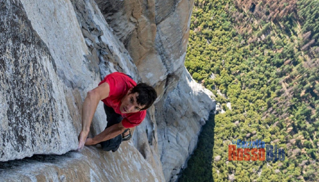 Un documentario straordinario, che racconta l’ultima leggendaria impresa di Alex Honnold: scalare la vetta di El Capitan, nel Parco del Yosemite, a mani rigorosamente nude, senza protezioni, appunto “free solo”, un’impresa che ha richiesto ben tre anni di preparazione, atletica quanto mentale.