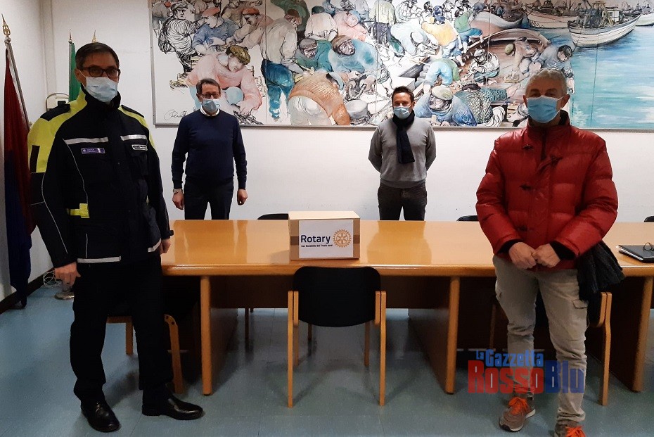Il Rotary Club San Benedetto Nord a sostegno degli “eroi” dell’emergenza: 150 mascherine, una prima dotazione rispetto a quella che verrà integrata nei prossimi giorni, sono state consegnate oggi, martedì 24 marzo, al sindaco Pasqualino Piunti da Luigi Anelli e Mario Di Buò – rispettivamente prefetto e tesoriere del RC presieduto da Terenzio Carboni- quale segno tangibile di vicinanza, e soprattutto di gratitudine, per il Corpo di Polizia Municipale di San Benedetto del Tronto.