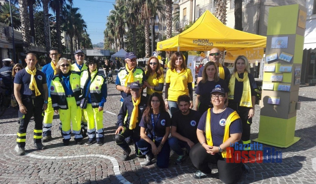 Viale Secondo Moretti, nel pieno centro di San Benedetto, ha fatto da cornice alla Campagna Nazionale “Io non rischio”, promossa e realizzata dal Dipartimento di Protezione Civile, Anpas, Ingv, ReLuis e Fondazione Cima, che ha aperto la settimana nazionale di Protezione Civile. Sono stati due giorni intensi durante i quali i comunicatori della Fisa (Federazione Italiana Salvamento Acquatico) e quelli del Gruppo comunale di Protezione Civile di San Benedetto del Tronto, hanno allestito i classici gazebi informativi “gialli”, facendo scoprire ai numerosi cittadini incuriositi dalla loro presenza, cosa ciascuno di noi può fare per ridurre il rischio terremoto, maremoto ed alluvione.