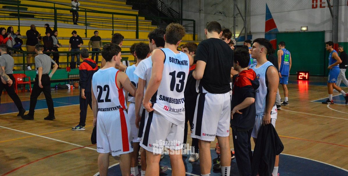 Alla ripresa del terzo quarto la Samb manca di precisione nei tiri da tre e sotto il ferro concedendo qualche punto di troppo ritrovandosi sotto di 8 punti al break. Il quarto quarto regala tantissime emozioni: i rossoblu sono sotto di 10 punti ma negli ultimi cinque minuti compiono una grande rimonta mettendo a segno molte triple con il giovanissimo classe 2006 Bortnikovs, Veronesi e Mittica, arrivando sull’82-83. Nel finale la squadra sbaglia qualche scelta e gli ospiti riescono a mettere a segno un canestro e due tiri liberi. Una nota di merito va fatta a questi ragazzi per l’impegno e il cuore messo in campo oggi, uno su tutti è sicuramente il giovanissimo capitano Maiorana Liga che ha disputato una gara di grande carattere.