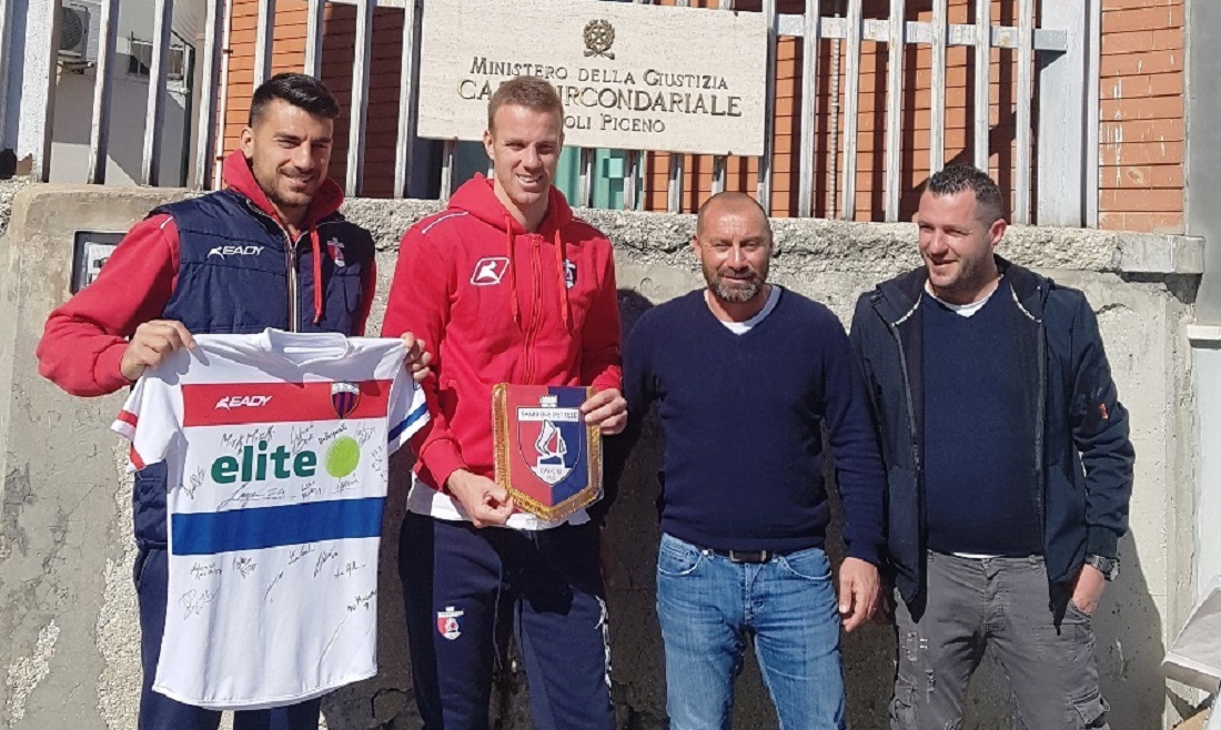 Una delegazione della Samb ha fatto visita ai detenuti del ramo giudiziario della Casa Circondariale di Ascoli. Alla breve e simpatica visita hanno preso parte il direttore sportivo Pietro Fusco, il team manager Pietro Buongiorno e i calciatori Francesco Stanco e Mirko Miceli, che hanno portato in dono alcuni gadgets e una maglia della Samb autografata da tutti i calciatori rossoblù. «Abbiamo vissuto un momento molto intenso – ha detto il team manager Buongiorno – considerando anche per alcuni di noi era la prima volta che entravamo in un carcere. Speriamo di aver portato ai detenuti un po’ di libertà in un luogo dove ce n’è davvero poca e voglio sottolineare la disponibilità dei nostri tesserati nel condividere questi momenti con i reclusi, che hanno voluto raccontarci le proprie storie e le disavventure vissute. In sostanza, è stata un’esperienza che porteremo per sempre nel nostro cuore». L’incontro, previsto dal progetto “Sport in carcere” del comitato marchigiano del Coni, è stato reso possibile grazie alla disponibilità della coordinatrice e capo area educativa del carcere piceno Maria Sparvieri e alla collaborazione delle educatrici Rossella Voltattorni e Cristina Sabatini, oltre alla disponibilità di Marcello Balloni e all’istruttore del Coni Valentino D’Isidoro che per otto ore a settimana fa praticare lo sport ai detenuti, il tutto sotto la supervisione della nuova direttrice Eleonora Consoli. I giocatori rossoblù hanno dialogato piacevolmente con tutti e hanno fatto anche da testimonial (prestandosi anche per un breve “torello”) alla partita sei contro sei che i reclusi hanno disputato, mostrando anche qualche individualità tecnica di buon livello. «La presenza del Coni nelle carceri del territorio – ha detto il presidente regionale, Fabio Luna – è un altro segno tangibile della volontà del Comitato olimpico, tanto a livello nazionale quanto a livello locale, di promuovere, attraverso la pratica sportiva e motoria tra i detenuti, il valore sociale, educativo e di integrazione dello sport. Quelli che il Coni Marche pone in essere ogni anno all’interno degli istituti penitenziari sono tra i progetti più importanti dell’attività del Comitato. L’iniziativa è stata resa possibile grazie alla disponibilità della Sambenedettese ed alla collaborazione dell’ufficio sport della Regione Marche e dei tecnici del Coni, a cui va il nostro sentito ringraziamento. Un grazie anche al referente della Giunta del Coni per i progetti nelle carceri, Giulio Lucidi, ed al delegato territoriale di Ascoli, Armando De Vincentis».