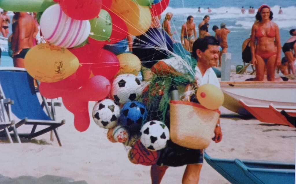 «Mille Lire! Mille Lire! Palloni, palloncini! Non vi affollate!», ripeteva Giggino detto “Lu Pallunare”, o più semplicemente noto ai più come “Il Signore dei Palloncini”. Questo iconico personaggio – originario di Piedilama (paesino collocato a pochissimi chilometri da Arquata) – è uno dei tanti volti che, tra gli anni 70’ e 80’, può vantare il merito di aver animato e reso memorabili brevi frangenti di estati sambenedettesi. Il suo richiamo, come il canto delle Sirene omeriche per Ulisse, risultava irresistibile per i numerosi bambini assiepati lungo l’esteso litorale rivierasco che, nonostante il consueto freno posto dai genitori, riuscivano con insistenza a spuntarla, facendosi finalmente legare al polso uno di quei colorati e ambiti palloncini.
