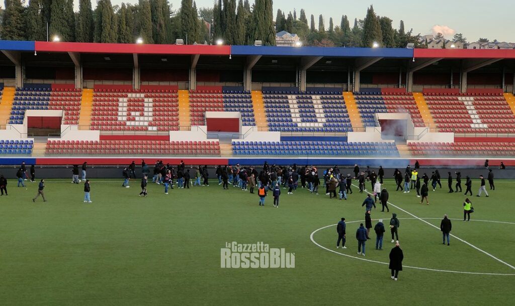 A rendere più complicata la gestione di questi istanti la mancanza di un adeguato servizio d’ordine, visto che molti tifosi sambenedettesi presenti in tribuna laterale sono stati fatti passare dal campo per iniziare il deflusso. Dopo una decina di minuti, le due fazioni sono state separate.