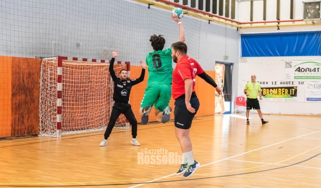 In avvio di ripresa i padroni di casa vanno sotto anche di 5, sembra finita, ma poi ecco la svolta. Monteprandone pigia il piede sull’acceleratore. Prestazione di spessore, con pochi errori e più concretezza sotto porta. Gli ultimissimi istanti di gara regala il 28-27 che permette ai verdi di issarsi in cima alla classifica.