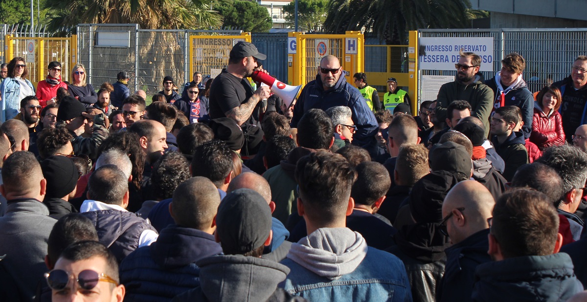 Prima di prendere il proprio posto sugli spalti i tifosi della Samb hanno organizzato un sit-in all’esterno della Curva Nord per alzare la voce riguardo al caso di Luca Fanesi, ancora ricoverato a Vicenza a seguito delle gravi ferite riportate dopo gli scontri fuori dal Menti. Tra le intenzioni dei supporter rossoblù c’è quella di dimostrare la propria vicinanza alla famiglia di Luca e accendere i riflettori sulla vicenda. Le versioni dell’accaduto di tifosi sambenedettesi e vicentini contrasterebbero con quelle delle forze dell’ordine, secondo cui si sarebbe trattato di un incidente. Chi si trovava vicino a Luca, in quei momenti, ha raccontato di un’aggressione delle forze dell’ordine. A prendere la parola, in rappresentanza della Curva, è stato Piergiorgio Trionfi: «La Polizia è intervenuta quando gli scontri con i tifosi del Vicenza erano terminati e, anziché fermare qualcuno e far defluire ha iniziato a manganellare . Io non ero al fianco di Luca, ma ci sono tre testimoni di San Benedetto che lo hanno visto essere colpito da più manganellate, anche quando era a terra». La richiesta del movimento ultras, non solo sambenedettese, è anche quella di arrivare a mettere il numero identificativo per gli agenti: «Non succede soltanto in Italia, è una battaglia che vogliamo portare avanti perché vogliamo evitare che si verifichino altri casi del genere».