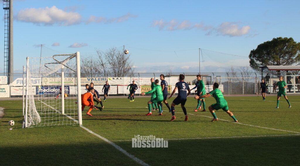 I ragazzi di Antonioli provano a reagire, ma i ritmi del match sono lenti e le emozioni stentano ad arrivare. Ferri Marini e De Sena provano a smarcarsi dalla stretta marcatura dei loro avversari, cercando di proporsi con scatti in profondità. Al 12’ è proprio il numero venticinque in maglia verde a venire lanciato in area avversaria, ma l’arbitro ferma tutto per fuorigioco. L’andamento della sfida vive di brevi e poco incisive fiammate e, poco prima della mezz’ora, Alboni pesca in area Ferri Marini che è bravo a girare in porta, ma la sua conclusione è debole e centrale. A dieci minuti dal termine della prima frazione di gioco arrivano le ultime due emozioni del match: per il Montegiorgio ci prova Perpetaj che impegna Knoflach scagliando in porta una violenta conclusione dal limite e, nel ribaltamento di front, Lisi è bravo a girarsi e a calciare di sinistro, ma la palla termina alta sopra la traversa. Il match riprende con le due squadre più convinte e vogliose di sbloccare il risultato. Dopo pochi minuti, Knoflach è bravo a e attento su un cross insidioso dalla sinistra indirizzato in porta: l’estremo difensore della Samb smanaccia e allontana il pericolo.