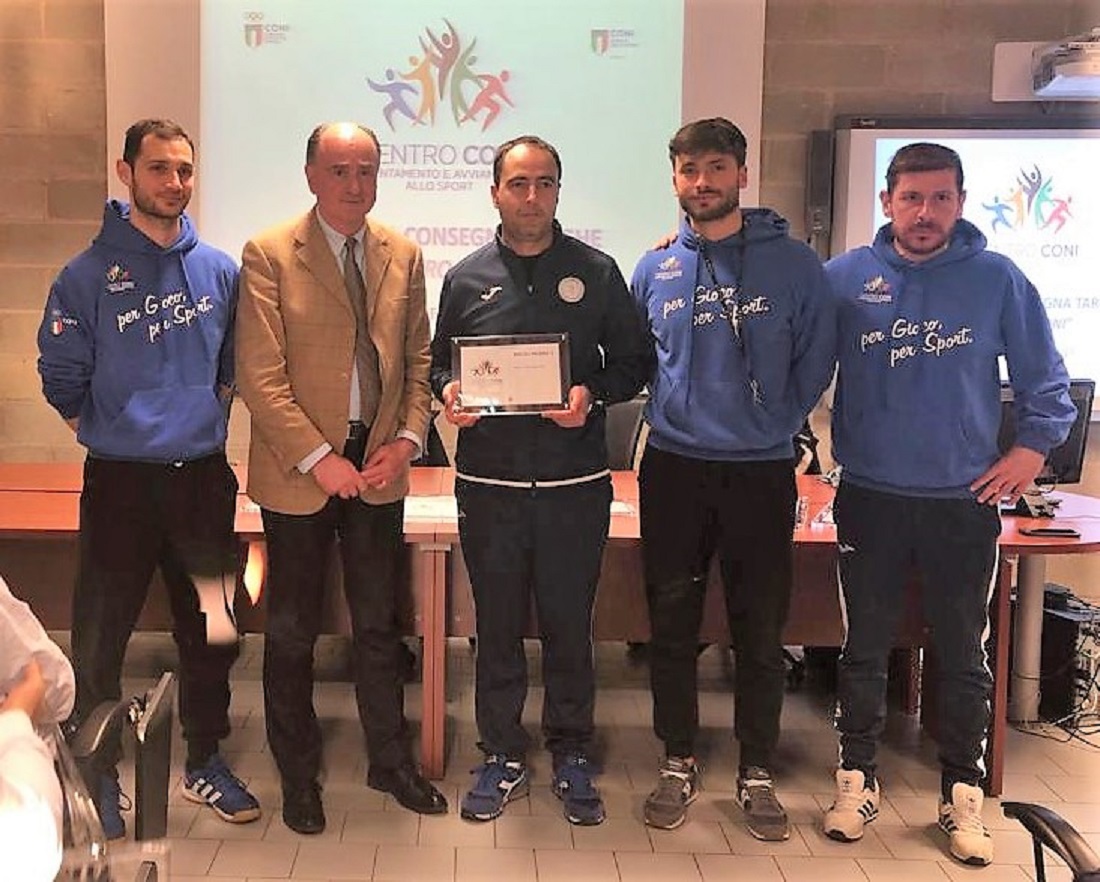 L’HC Monteprandone è l’unica società della provincia di Ascoli Piceno, insieme all’Amatori Rugby Ascoli, a essere stata insignita per la partecipazione al progetto Centro CONI – Orientamento e Avviamento allo sport. La cerimonia di premiazione si è tenuta oggi pomeriggio nella sede del CONI Marche al PalaPrometeo Estra Rossini di Ancona. A ritirare la targa, il dirigente dell’HC Monteprandone, Raffaele Salladini, che a settembre ha conseguito il patentino di allenatore di 1° livello e che insieme al coach della prima squadra e del settore giovanile blu, Andrea Vultaggio, ha preso in carico ben 30 giovani atleti (dai 6 ai 14 anni e tutti tesserati con la società blu). Il progetto, attraverso la sinergia di una rete nazionale e di un’altra territoriale di istruttori qualificati, intende offrire ai bambini/ragazzi dei luoghi ideali in cui proporre, sperimentare e validare innovative strategie di formazione, di pratica, di orientamento e di avviamento all’attività sportiva giovanile, quale che sia la disciplina. Valorizzando l’azione educativa dello sport, lo stesso progetto mira a far compiere ai giovani un percorso che sappia motivarli contrastando fortemente il fenomeno dell’abbandono sportivo, con l’obiettivo di arrivare ad acquisire abilità e competenze motorie e sportive, mediante la sperimentazione di diverse pratiche sportive. “Abbiamo aderito all’iniziativa la stagione scorsa e adesso siamo orgogliosi di ricevere un riconoscimento del genere” ha detto, emozionato, Raffaele Salladini dopo aver ritirato la targa dalle mani del presidente del CONI Marche, Fabio Luna, alla presenza dei tecnici formatori e coordinatori del progetto, Alessandro Squartini, Francesco Marcucci e Patrizio Tombolini. Per l’HC Monteprandone dei fratelli Roberto e Pierpaolo Romandini, dunque, l’ennesima grande soddisfazione che proviene dall’attività del settore giovanile e che va ben oltre i confini della pallamano.