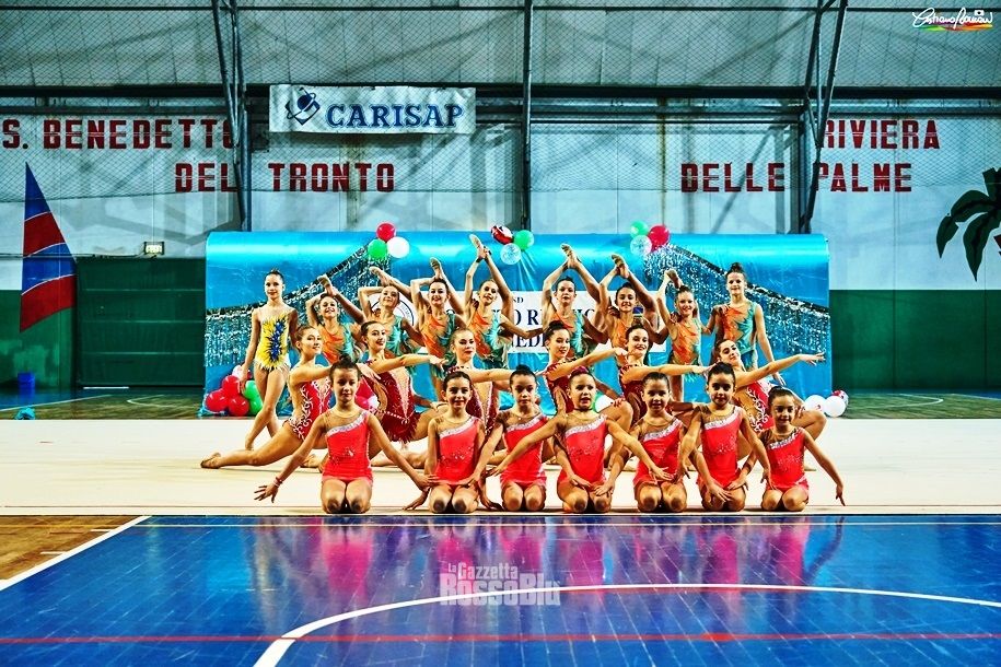 Il Palasport “Bernardo Speca” di San Benedetto ha ospitato l’atteso saggio di Natale della Progetto Ritmica, società che per l’occasione ha voluto festeggiare in pubblico i primi dieci anni di attività, ricorrenza caduta nel 2020. Tra esibizioni ginniche, coreografie e l’immancabile saluto finale dell’allenatrice Margherita Aschenkova, il pubblico ammesso al saggio (svoltosi nel pieno rispetto delle normative anti Covid-19 e trasmesso anche in diretta streaming) ha trascorso un piacevole pomeriggio, conclusosi con l’omaggio floreale delle allieve alle proprie istruttrici.