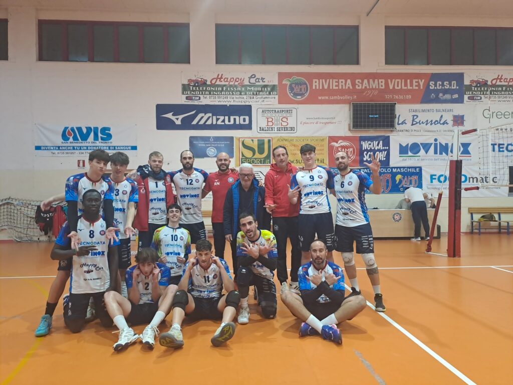 Nel secondo set la Tecnodata Movinox, invece, è partita con il piede giusto portandosi subito avanti e allungando, chiudendo poi la frazione senza patemi. Anche nel terzo set i rossoblu sono partiti bene e si sono portati avanti, subendo però nella seconda metà della frazione il prepotente ritorno della Frezzotti Trasporti che si è portata avanti 2-1. Ed è ripartita forte anche nel quarto per provare a chiudere la pratica, cosa che sembrava fatta sul 22-18. I ragazzi di Rocco Netti, però, non hanno mollato, sono riusciti ad annullare il gap, aggiudicandosi il set ai vantaggi. Nel tie break i padroni di casa sono partiti meglio, conquistando subito un buon margine che sono riusciti a conservare fino alla fine.