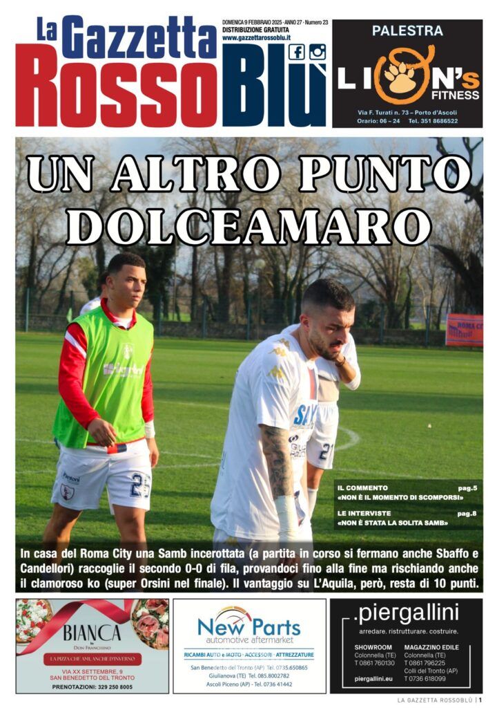 Qui sotto riportiamo l’edizione digitale della Gazzetta Rossoblù in occasione di Roma City-Samb, match valido per la 23^ giornata del girone F di Serie D.