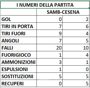 Samb-Cesena 0-2, i numeri della partita