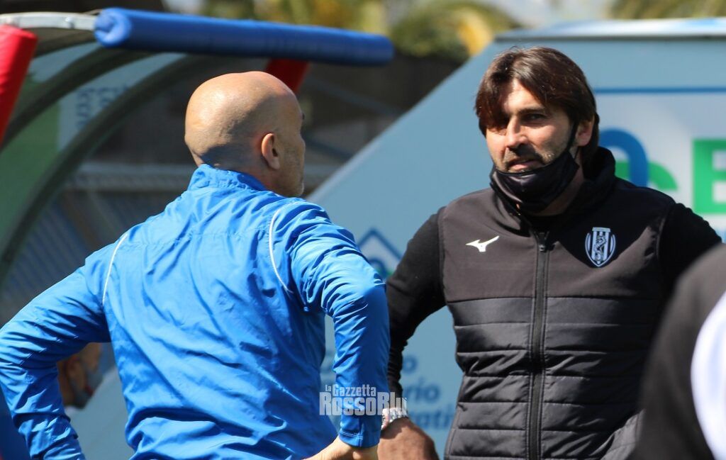 È andato in scena a livello tattico praticamente l’inverso di quanto visto appena quattro giorni fa contro la Triestina, sconfitta anche questo pomeriggio con una clamorosa rimonta in zona Cesarini dal Perugia. Il Cesena fa bottino pieno contro la Samb, come già realizzato da Modena e Matelica, con un assetto tattico identico a quello presentato da Montero, ma più fluido, rapido ed incisivo. Ha provato il trainer uruguagio a ripresentare stessi uomini e stesso layout vincenti contro gli alabardati, ma dopo un avvio promettente sono stati gli ospiti a prendere le giuste misure, ad imporsi a centrocampo con un Di Gennaro stratosferico e a far soffrire i padroni di casa con le sovrapposizioni dei laterali difensivi e la mobilità degli esterni, soprattutto Collocolo a destra, autore del “coast-to-coast” che ha spezzato l’equilibrio. A Biondi e compagni sono mancate la velocità nella circolazione della palla, gestita con troppi ed imprecisi tocchi, e la capacità di creare superiorità numerica. Botta ci ha provato individualmente, predicando però nel deserto, in un contesto statico e prevedibile, contro cui ha avuto gioco facile la salda retroguardia romagnola. Non è servito neanche il doppio cambio in avvio di ripresa, con cui si è alzata la catena di sinistra tramite l’inserimento di Trillò al posto di Goicoechea e si è accentrato Botta al fianco di Lescano, rilevando uno spento Babic con Chacon posizionato da esterno destro. Ha accusato un leggero calo il Cesena solo a metà ripresa, subito sapientemente stoppato da Viali con un triplice cambio, che ha permesso ai suoi di condurre in porto senza patemi il rassicurante doppio vantaggio. Da notare che tra i subentrati c’è stato anche Lorenzo Sorrentino, che per ironia della sorte giusto cinque anni fa, segnando assieme a Titone, regalava il 2-1 sulla Jesina, con cui la Samb di Fedeli brindava al ritorno tra i professionisti. Categoria che ora si cerca strenuamente di difendere per non ripiombare nell’inferno del dilettantismo.