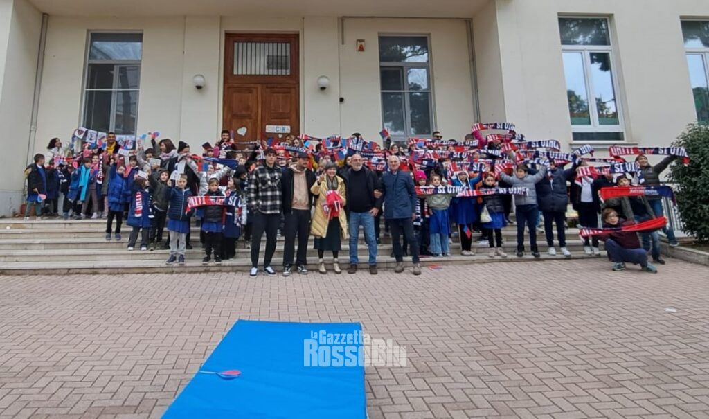 Una mattinata di festa che ha visto coinvolti molti piccoli tifosi rossoblù che, accompagnati nel cortile della scuola dai propri docenti, hanno avuto l’occasione di strappare autografi e foto con i propri beniamini. Presenti anche Bruno Fares e Giovanni Laghi, ideatori e promotori dell’iniziativa “Uniti si Vince”.