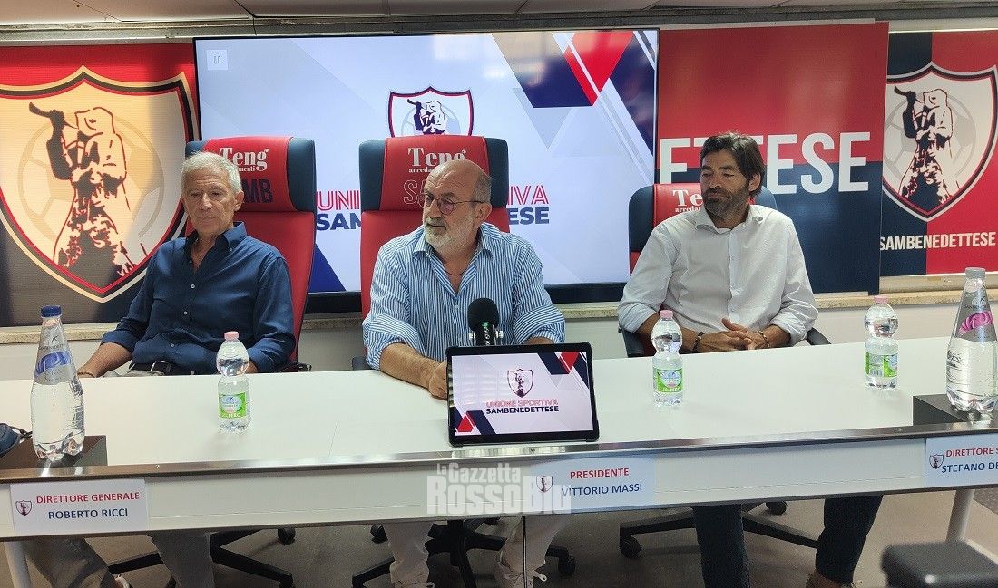 «Ora ci sarà chi parlerà anche al mio posto con tono pacato, perché a volte io ho “sbracato” nelle dichiarazioni, facendo anche ridere qualcuno, anche se le mie parole sono sempre dettate dal fatto che io la Samb la sento in modo forte, sette giorni su sette e ventiquattro ore al giorno – le parole di Massi –. In questi mesi abbiamo visto decadere società forti, di blasone. Noi in quest’estate siamo rimasti a vedere ciò che succedeva agli altri, dispiacendosene perché sono situazioni che la realtà di san benedetto conosce bene, anche se si tratta di società che in campo possono essere avversarie. La nostra estate, invece, è stata di crescita, ragionando su come ci saremmo potuti migliorare rispetto all’anno scorso. Con il d.s. De Angelis, mister Palladini e ora il d.g. Ricci abbiamo allestito un ottimo gruppo per continuare questo percorso».