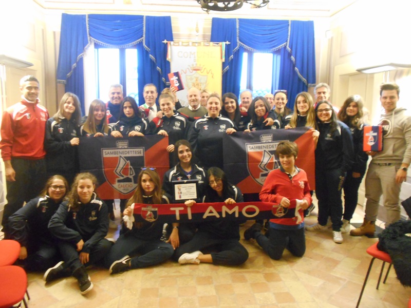 Presso la sala consiliare del Comune di Acquaviva Picena è stata ufficialmente presentata la squadra della Sambenedettese Calcio femminile. Nel comune acquavivano le calciatrici disputeranno le gare del campionato di Serie C. Nel corso della presentazione sono intervenuti l’Assessore allo Sport, Luca Balletta, il coordinatore generale del Settore Giovanile e Scuola Calcio Pasqualino Provaroni, il segretario Generale Giancarlo Palma e Silvestro Pompei, Direttore Generale della Sportlandia, società partner della Samb in questa avventura.