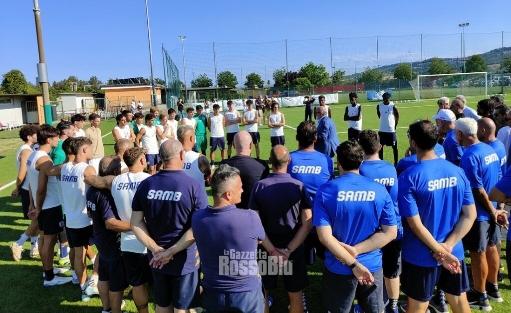Inizia la stagione 2025/26 della Samb. Alle 17:30 di oggi (sabato 12, ndr) la prima squadra rossoblù si è ritrovata per il primo allenamento agli ordini di Ottavio Palladini e del suo staff tecnico. Larghi sorrisi sotto gli occhi della dirigenza al completo, con in prima fila il presidente Vittorio Massi. Presenti nei pressi dell’impianto anche circa 300 tifosi, che hanno assistito ai primi esercizi di capitan Eusepi e compagni sotto la supervisione del prof Di Renzo.