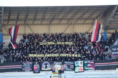 2324 samb l’aquila tifosi 55 tifosi l’aquila striscione massimo cioffi Di Redazione GRB il 27 Novembre 2023 alle 21:23 Altro in : Samb-Perugia, la probabile: ballottaggio Zini-Marranzino a destra, Stoppa con Eusepi 8 Febbraio 2026 Verso Samb-Perugia, info e viabilità: modifiche in viale dello Sport dalle 12:00 7 Febbraio 2026 Samb, dalla lista dei partenti a quella dei convocati: Martins, Alfieri e Scafetta e le parole di D’Alesio 7 Febbraio 2026 Commenti