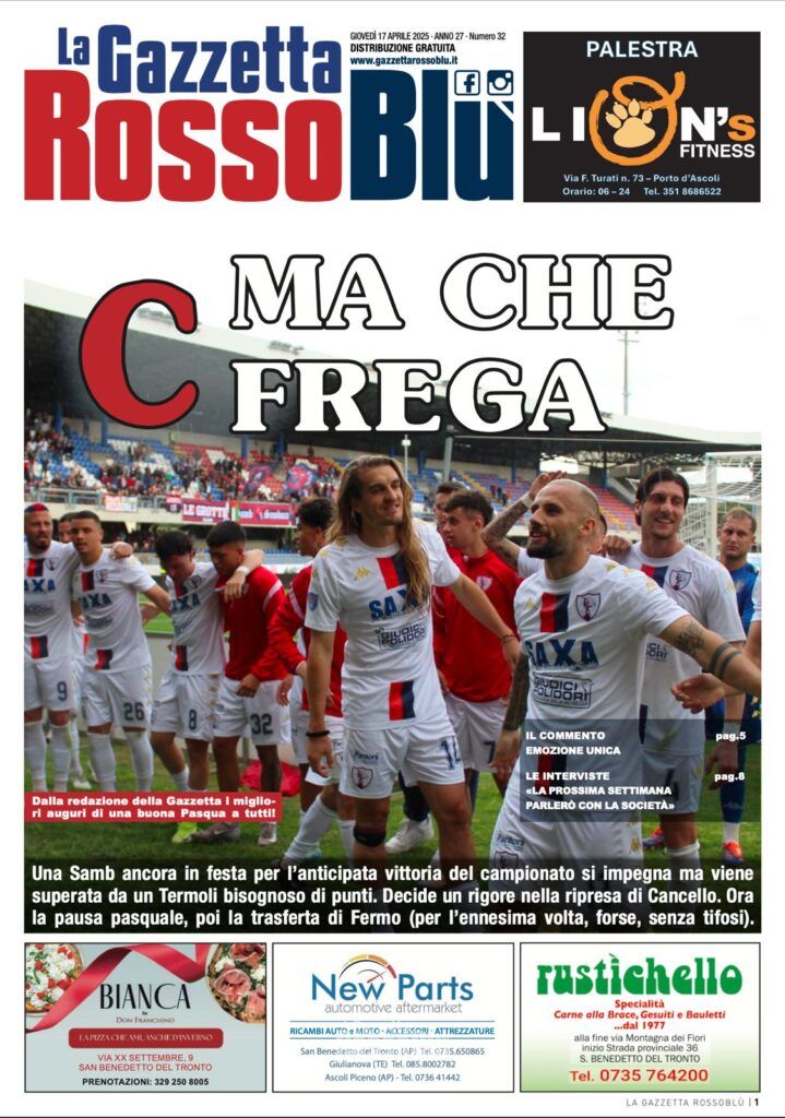 Qui sotto riportiamo l’edizione digitale della Gazzetta Rossoblù in occasione di Samb-Termoli, match valido per la 32^ giornata del girone F di Serie D.