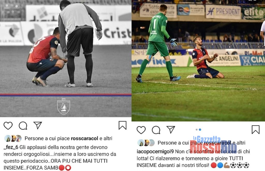 Tre sconfitte di fila e una rosa sempre più ridotta all’osso: il momento è difficile ma i giocatori della Samb provano a rialzare la testa dopo il 3-0 subito in casa contro il Vicenza nella 12^ giornata di campionato. «Sconfitte ed errori sono parte del percorso e fanno crescere» ha scritto sul suo profilo Instagram il portiere Antonio Santurro, espulso al 3′ nel corso del match del Riviera delle Palme. Sui social ha provato a suonare la carica anche il centrocampista Federico Angiulli: «Gli applausi della nostra gente devono renderci orgogoliosi… Insieme a loro usciremo da questo periodaccio. Ora più che mai tutti insieme, forza Samb». Sulla stessa lunghezza d’onda anche l’attaccante Iacopo Cernigoi: «Non c’è sconfitta nel cuore di chi lotta! Ci rialzeremo e torneremo a gioire tutti insieme davanti ai nostri tifosi».