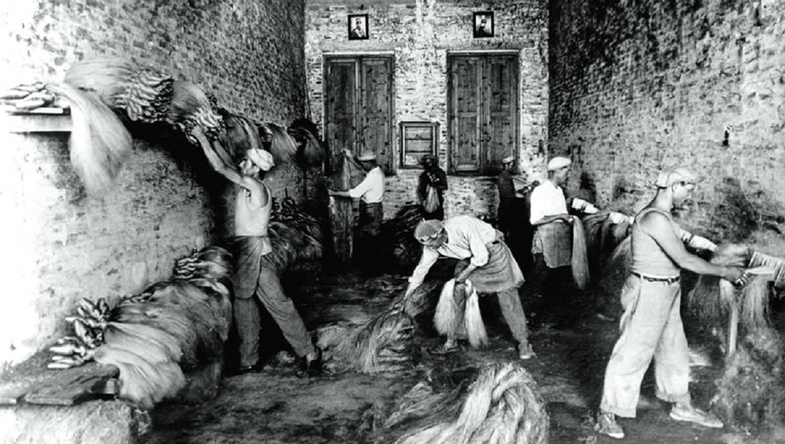 Ogni qualvolta si pensa e ci si immerge nella cultura rivierasca ci si imbatte nella figura del marinaio, “lu marenare”, che con la sua tenacia riesce ad affrontare le insidie del mare. Invece un’altra categoria lavorativa, complementare ma non di certo secondaria, è quella dei funai: uomini e lavoratori indefessi che sono riusciti ad imprimere una vera e propria “fabbrica artigianale” nella produzione di funi e cordami nella Riviera delle Palme. Essi stessi, con la costituzione del loro sentiero su cui operavano, compivano un andirivieni che determinava la filatura della canapa o meglio del nocchio (matassa che veniva posta sulla cintola nella realizzazione dei cosiddetti “fezzùle”). Stando alle dimensioni ricavate si potevano distinguere funai di grosso e di fino, che con maestria e sapienza sapevano “commettere” i filamenti di una fibra tessile molto ricercata nel secolo scorso per varie finalità. Al giorno d’oggi sarebbe forse definitivo un lavoro minorile, ma un tempo non molto remoto venivano impiegati anche i bambini (in età scolare e anche prescolare), affinché girassero la ròte, come si deduce dal termine gergale una ruota in legno che consentiva di attivare il congegno tessile. Si era soliti osservarli lungo l’alveo del Torrente Albula (“lu Fusse”), che alle volte li rendeva soggetti a inondazioni improvvise. Dunque il loro contributo così fattivo e dedito ad una crescita economica e produttiva della città lì erigono al rango di simboli della cultura marinara.
