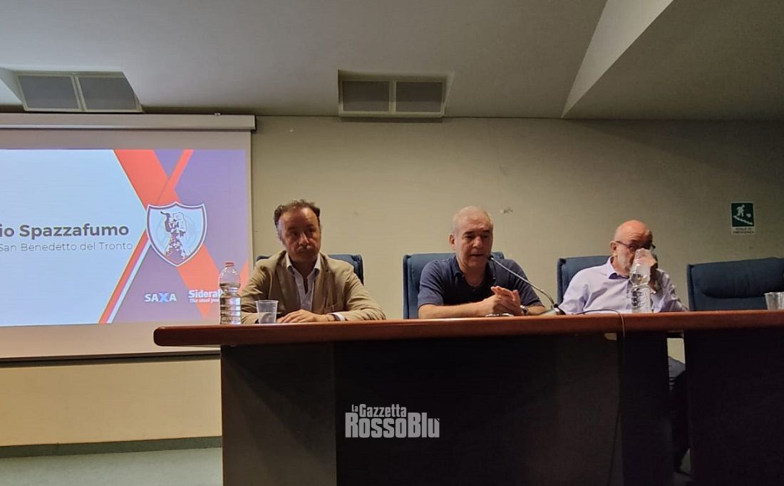 Si è tenuta all’auditorium comunale G. Tebaldini la presentazione della campagna abbonamenti della San Benedetto Calcio per la stagione 2023/24 di Serie D. “Onoriamo San Benedetto” il claim scelto dalla società del presidente Vittorio Massi, che è intervenuto alla conferenza così come hanno fatto il sindaco di San Benedetto del Tronto Antonio Spazzafumo, il CEO di Sideralba Luigi Rapullino e Gianluca Bartolomei (legale della Regenyal Laboratories).