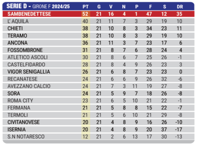 Serie D girone F: risultati, classifica e prossimo turno dopo la 21^ giornata