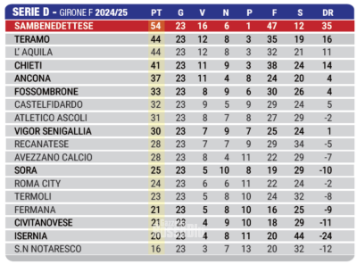Serie D Serie D girone F: risultati, classifica e prossimo turno dopo la 23^ giornata Di Redazione GRB il 9 Febbraio 2025 alle 21:20 Altro in Serie D: Samb-Bra, le probabili formazioni: possibile chance dal 1′ per Napolitano 22 Agosto 2025 Samb, Ottavio Palladini riceve il premio alla carriera dal D Club 17 Giugno 2025 Samb, tra i pali confermato Tommaso Orsini. Semprini ai saluti 16 Giugno 2025 ROMA CITY-SAMB 0-0, LA CRONACA ROMA CITY-SAMB 0-0, LE PAROLE DI PALLADINI TUTTE LE NOTIZIE DELLA GAZZETTA Commenti