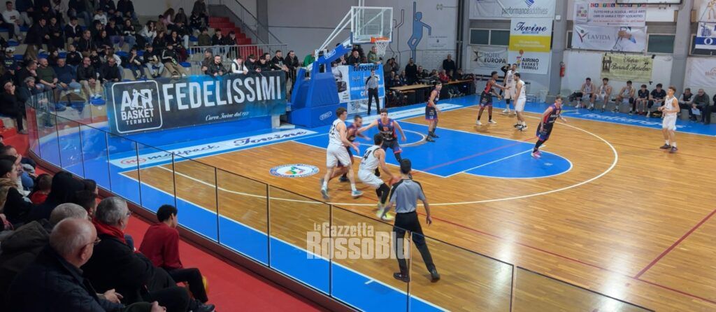I rossoblù si presentavano in Molise con i nuovi arrivi Sgura e Tongue Zuko ma privi di Maiorana. Dopo una partenza difficile i rossoblù si rimettevano in carreggiata restando in scia ai padroni di casa per tutto il primo tempo. Il secondo tempo è stato un susseguirsi di emozioni e continui ribaltamenti di fronte in un palasport infuocato dal tifo dei locali. Fenomenali nel finale di gara le giocate di Raul Cardenas, un vero incubo per la difesa termolese. Dopo la tripla del pareggio di Rupil era decisiva la risposta di Bassetti, con il canestro decisivo da 3 punti.
