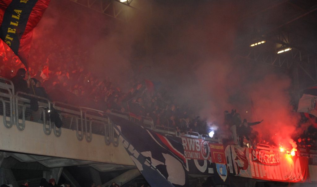 Freddo atroce? No problem! Miracoli fa subito esplodere la bolgia del Riviera. Dopo tre minuti Valente scappa via sulla sinistra e buca l’area mettendo dentro un pallone velenosissimo sul quale si fionda il bomber rossoblù. Con Valentini battuto è un gioco da ragazzi mettere in rete l’1 a 0. I padroni di casa attestano la supremazia territoriale sospinti da un tifo incredibile. La Fermana accusa il colpo: la costruzione della manovra canarina è lenta e prevedibile, il risultato è una accozzaglia di passaggi che a stento arrivano dalle parti di Pegorin. Petrucci prova a dare una scossa su calcio di punizione scodellando in area un pallone al 25’. Stacca Mane che prova a battere Pegorin, bravo ad alzare in angolo. Clemente impazzisce sulla difensiva destra ogni volta che Valente ha la palla tra i piedi. Ci mette del suo anche Di Massimo che al 38’ riceve al limite dell’area e si smarca per tirare. La conclusione viene respinta da Mane, a giudicare dalle proteste rossoblù, con la mano. Si chiude sotto la Nord il primo tempo, in avanti per la Samb, ricorrendo alla specialità di casa Tomi: il calcio di punizione si spegne di poco sul fondo. La prova dei rossoblù è più che buona tanto che la Fermana funge quasi da sparring partner. Riparte alla grande Di Massimo che si accende sulla trequarti imbeccato dalla solita giocata da Oscar di Valente. l’esterno abruzzese ricambia il favore chiudendo la triangolazione col compagno in area. Tutto solo, Valente, ci prova trovando un corner. Sugli sviluppi del calcio d’angolo nasce un mischione in area risolto da Di Pasquale che dopo una serie di batti e ribatti deposita alle spalle di Valentini. Timida reazione ospite al 16’ con Cremona che prova a sorprendere palla al piede Mattia e Conson, il gigante barbuto va al doppio della velocità e si rifugia in angolo. Destro butta dentro anche Akammadu, la Fermana viaggia a trazione anteriore ma resta comunque ingabbiata nella solida, inedita, retroguardia rossoblù. Alla mezz’ora l’opera d’arte è completa. Tomi dalla bandierina serve Di Pasquale che firma il tris. La Fermana non ne ha più e la Samb spadroneggia in lungo e in largo. Capuano regala uno scampolo di derby anche a Candellori e Ceka. Un dominio mai parso in discussione partorisce un risultato più che giusto alla luce di quanto mostrato dalla Samb: organizzazione, forza e lucidità di pensiero. Tre punti e tre gol: il miglior modo per chiudere il 2017.